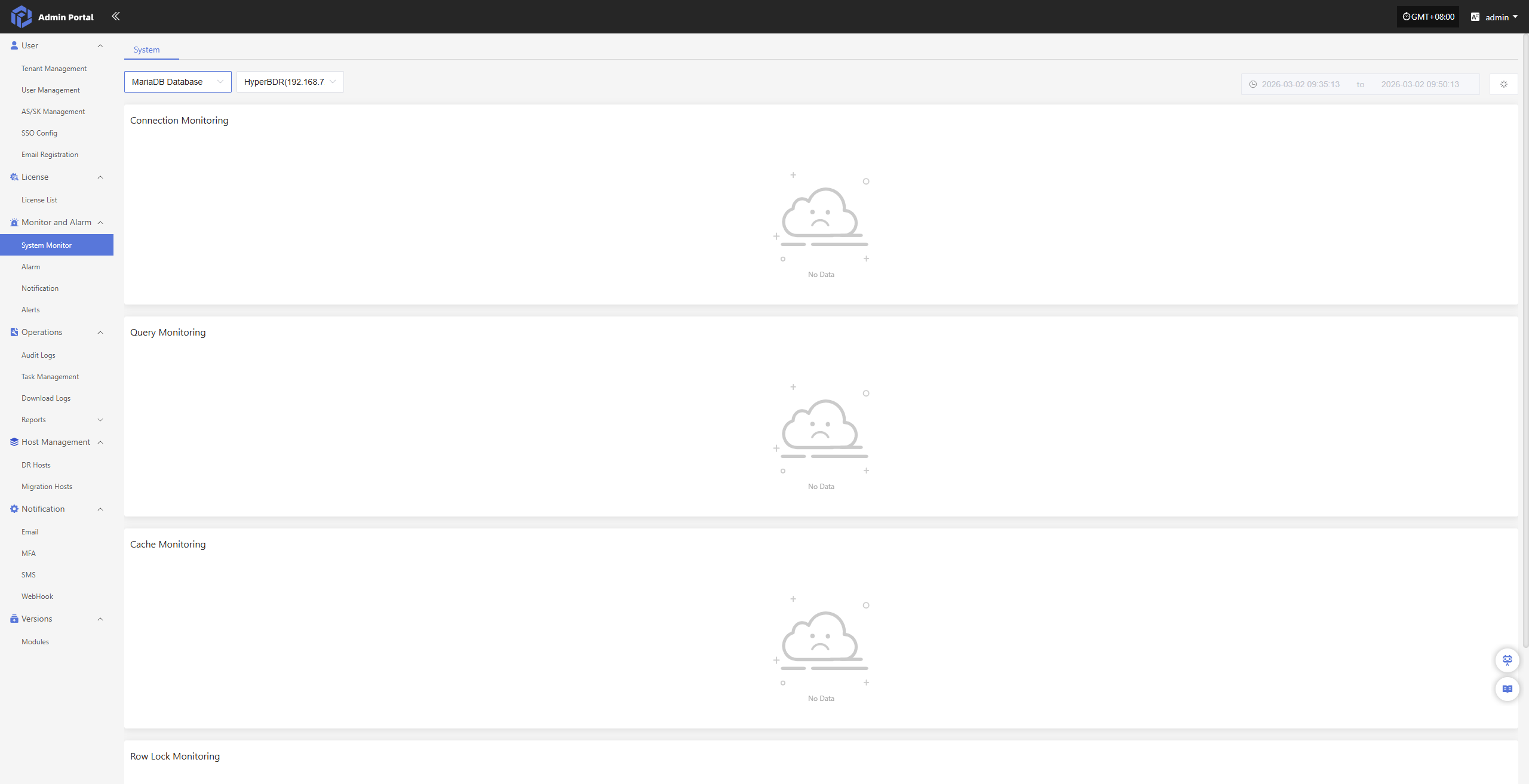 The "DR User Hosts" module displays the disaster recovery host resources for each tenant. Users can select different tenants to view their corresponding host information, making unified management and status monitoring easier.