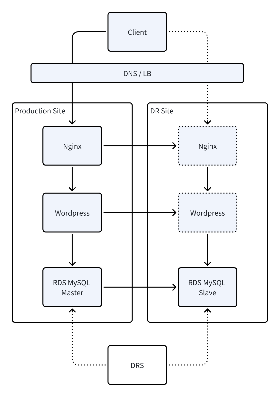 Services like WordPress and Nginx can operate stably under normal circumstances, so there's no need to set up a bunch of complex components specifically for DR.