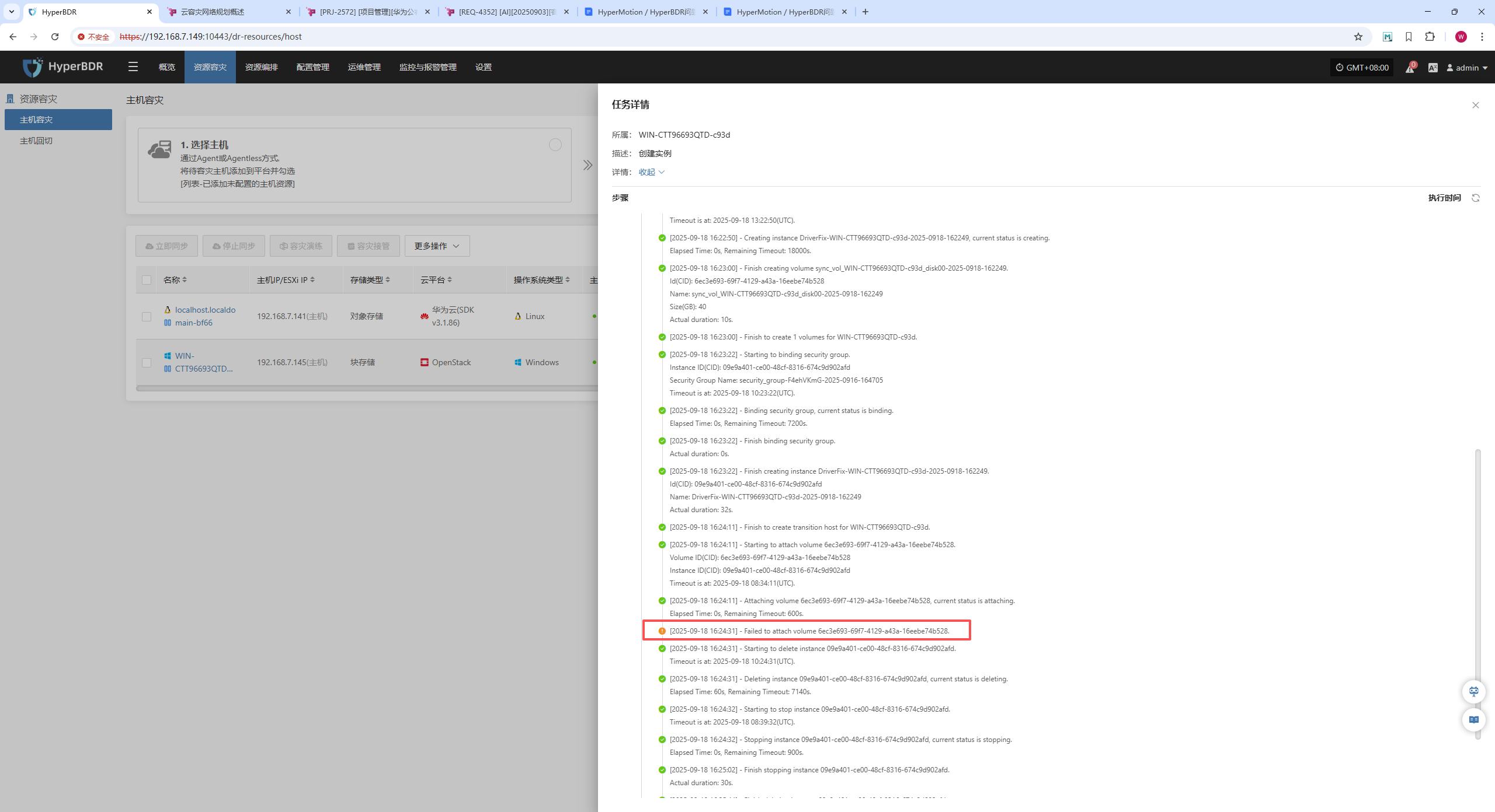 - Target-side issues These relate to the state of the target cloud platform or its APIs. Typical exceptions: misconfigured auth, poor network planning, or insufficient resource quotas. Log analysis helps you detect such problems early so migration or DR tasks can proceed after adjustments.