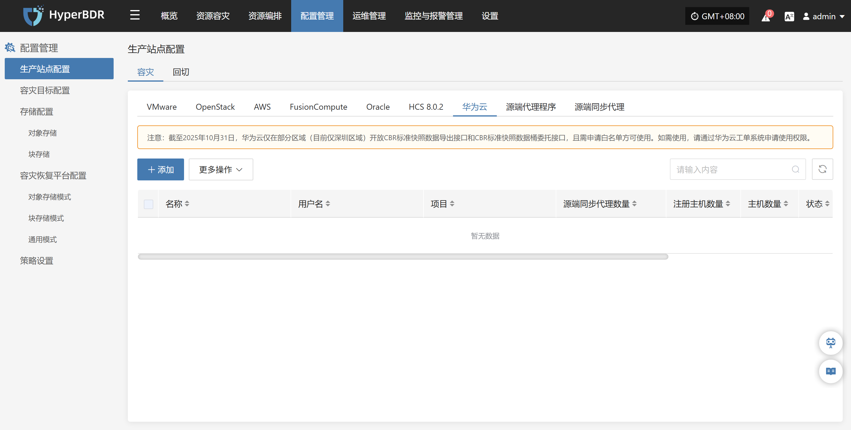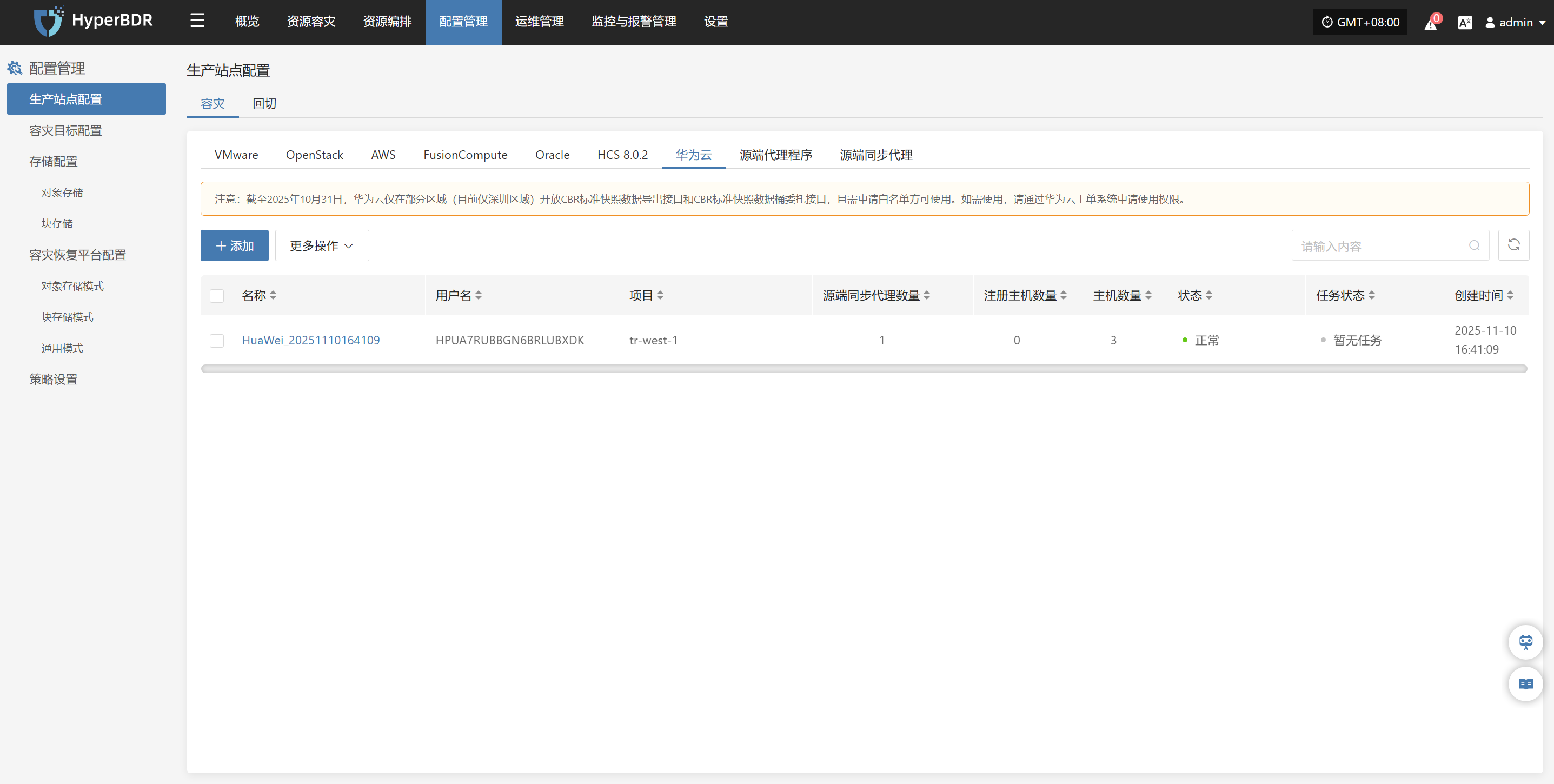 该模块展示当前系统已接入的所有容灾端平台的成功和失败数量,以及详细配置信息。