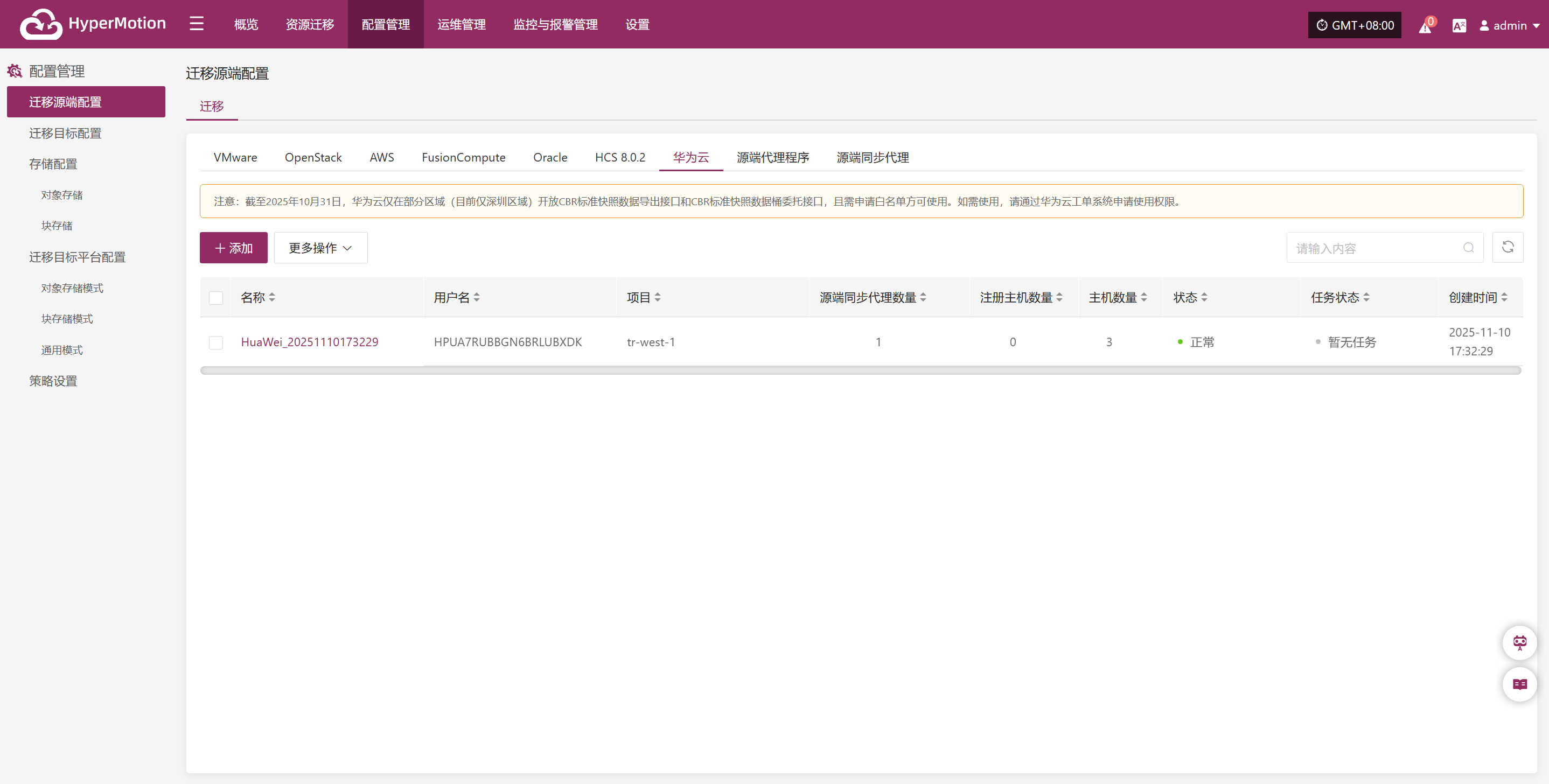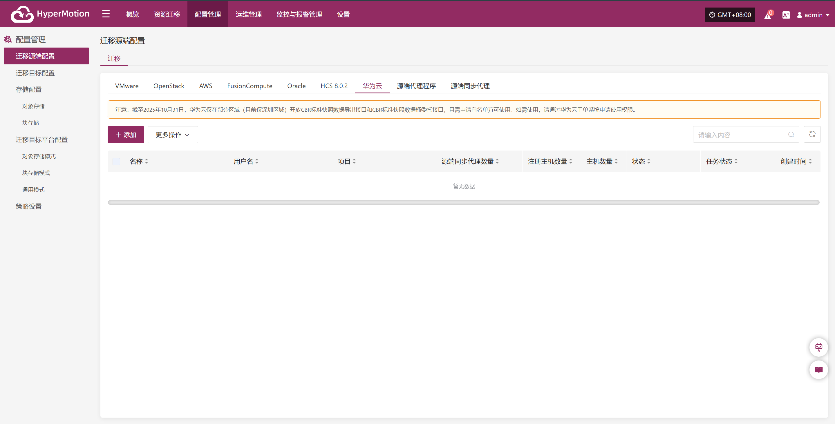 | 主机资源 | 添加主机迁移配置、启动主机、清理资源、强制中止任务、主机失联/恢复、快照完整性检查、同步主机、接管主机迁移、资源限制配置相关操作等 | 与迁移主机的任务执行、状态监控、资源操作相关。 |